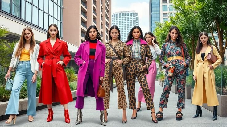 2025 embraces individuality through bold color palettes and statement pieces. Vibrant tones like electric blue, neon green, and coral are trending, while contrasting color-blocking and patterns are making wardrobes more dynamic.